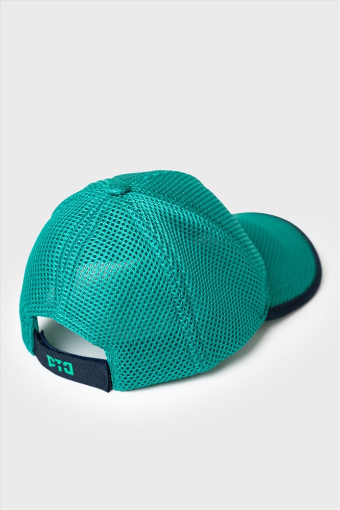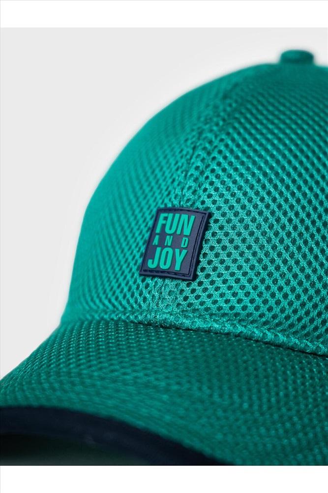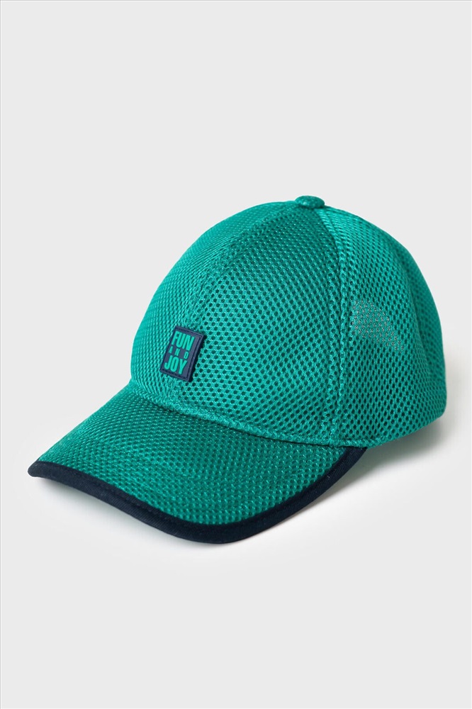 Детская бейсболка для мальчика. Выполнена из легкой дышащей сетки. Форма — классическая, с изогнутым козырьком и регулировкой объема сзади на липучке. Спереди размещена декоративная нашивка, а на заднем ремешке — контрастная надпись.