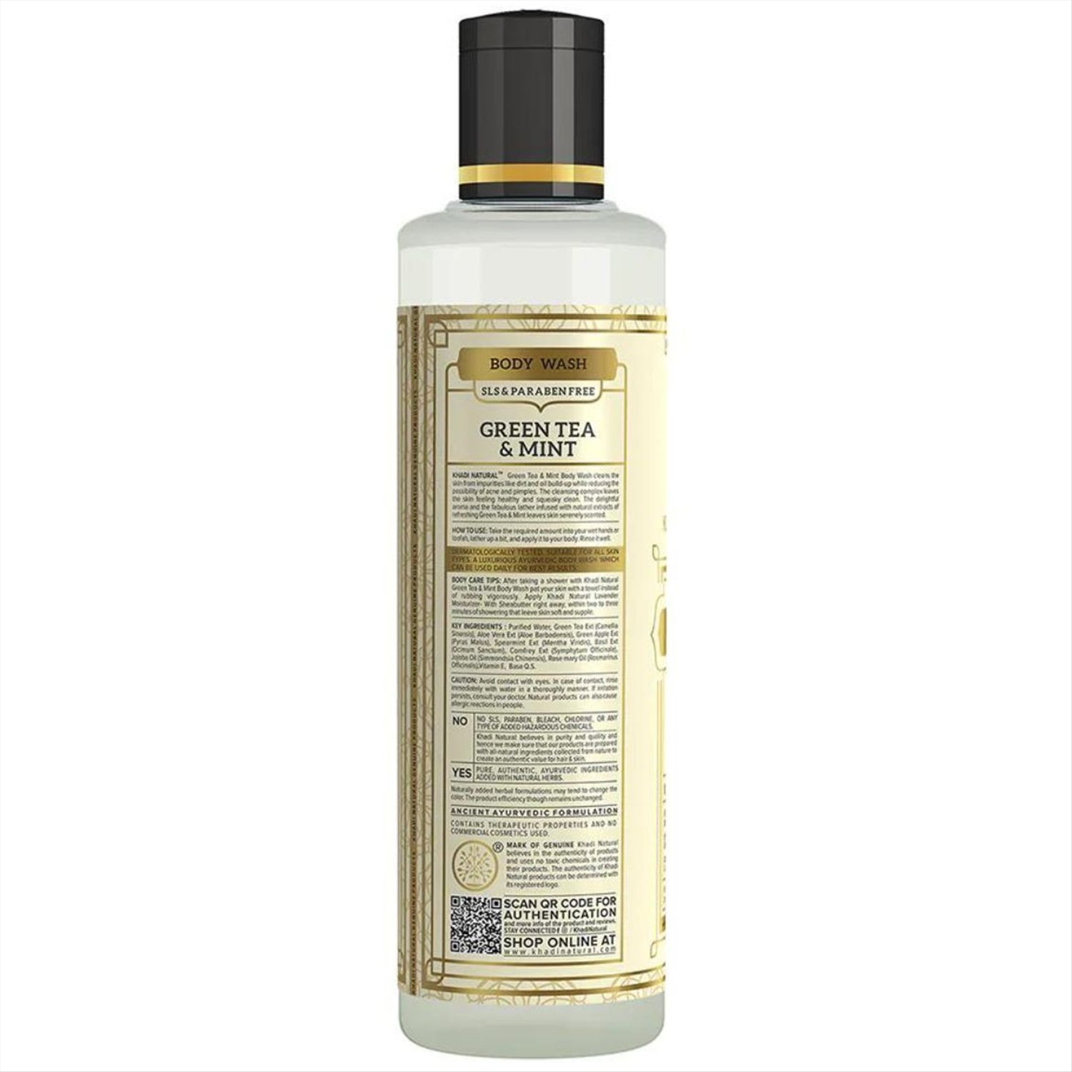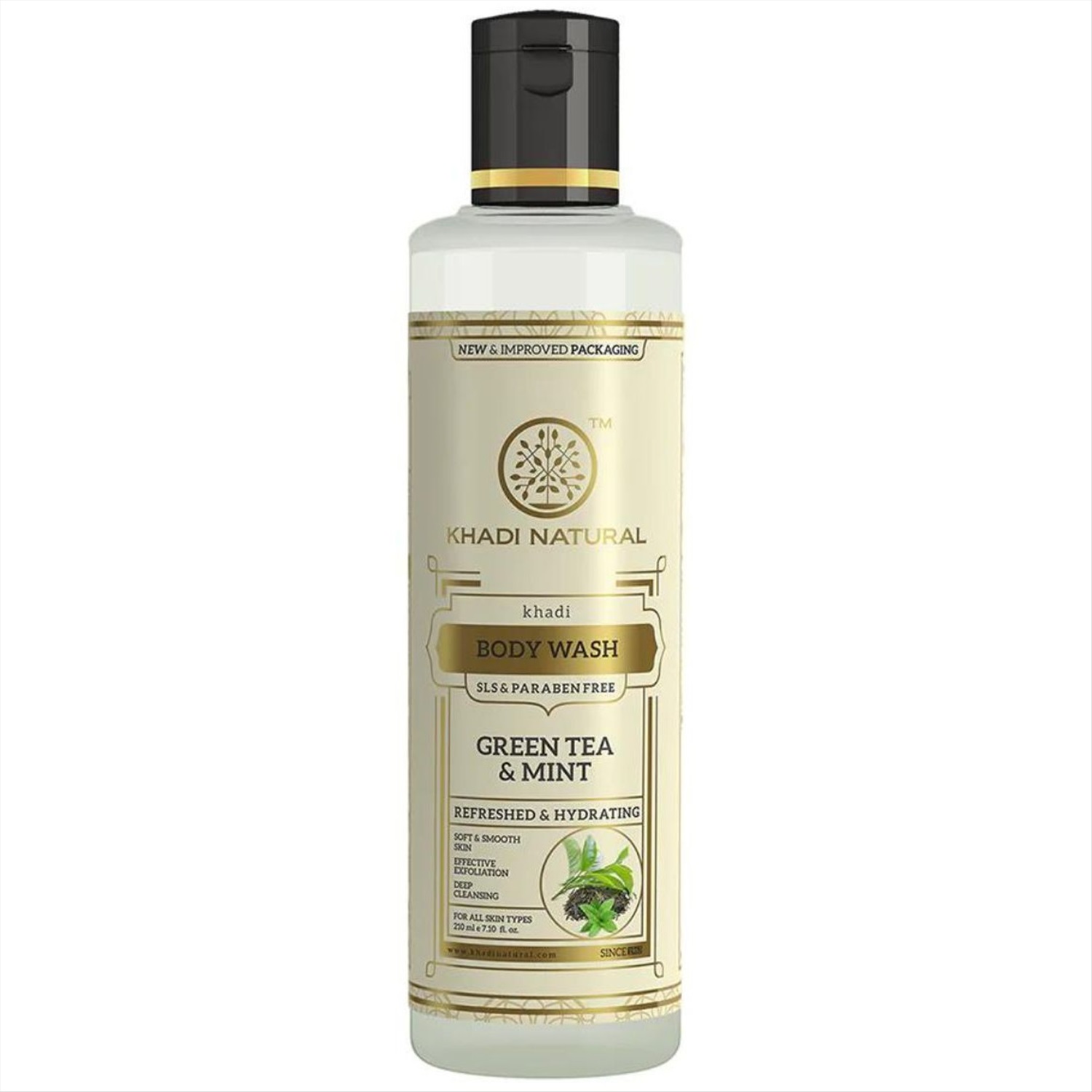 Гель для душа «Зелёный чай и мята» Khadi Natural (без SLS и парабенов) очищает кожу от загрязнений и уменьшает вероятность появления прыщей. Средство оставляет кожу здоровой и чистой.
