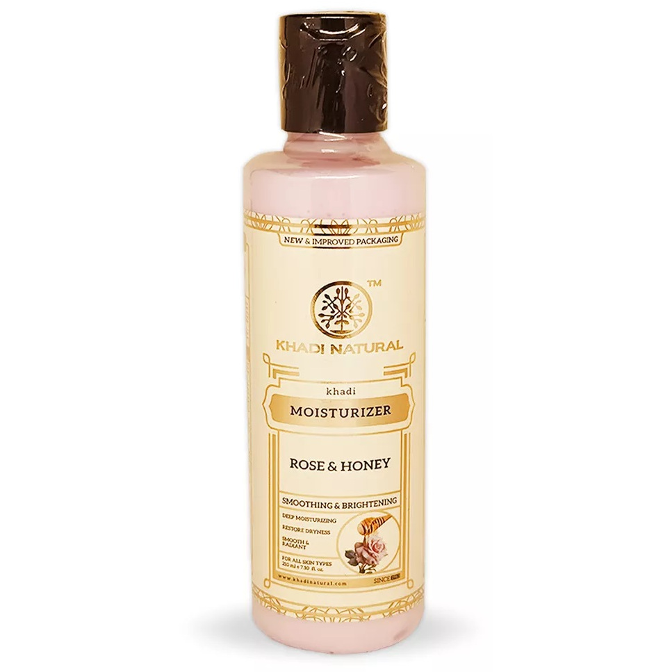 Увлажняющий лосьон «Роза и Мёд» Khadi Natural — средство для ухода за кожей всех типов. В состав входят розовое масло, масло жожоба, экстракт алоэ-вера и другие натуральные компоненты.