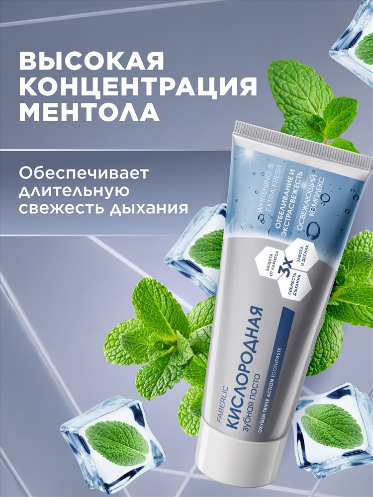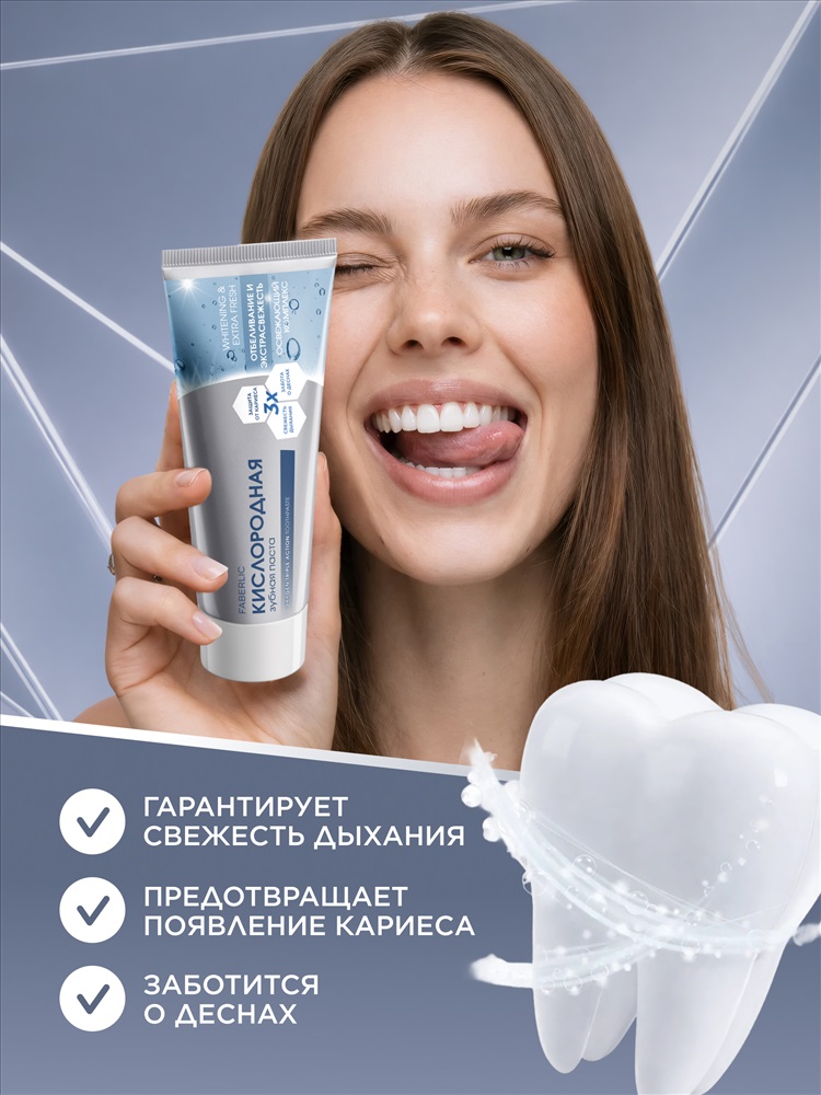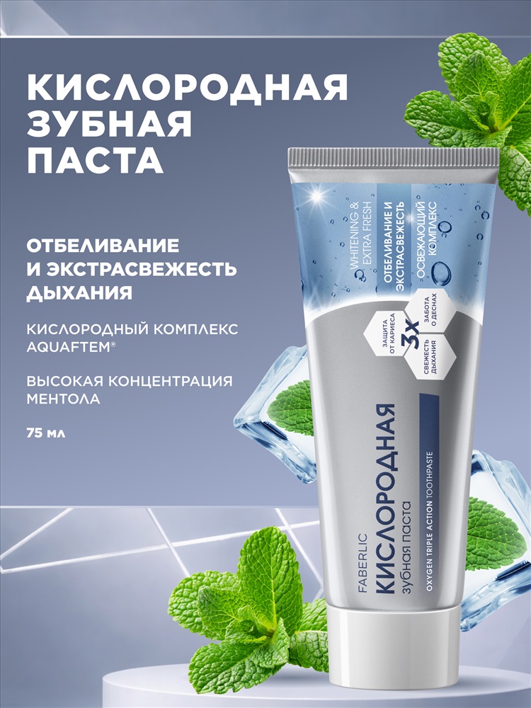 Кислородная зубная паста «Отбеливание и экстрасвежесть» разработана специально для интенсивного ухода за полостью рта. Гарантирует пролонгированную свежесть дыхания и сохраняет естественную белизну зубов.