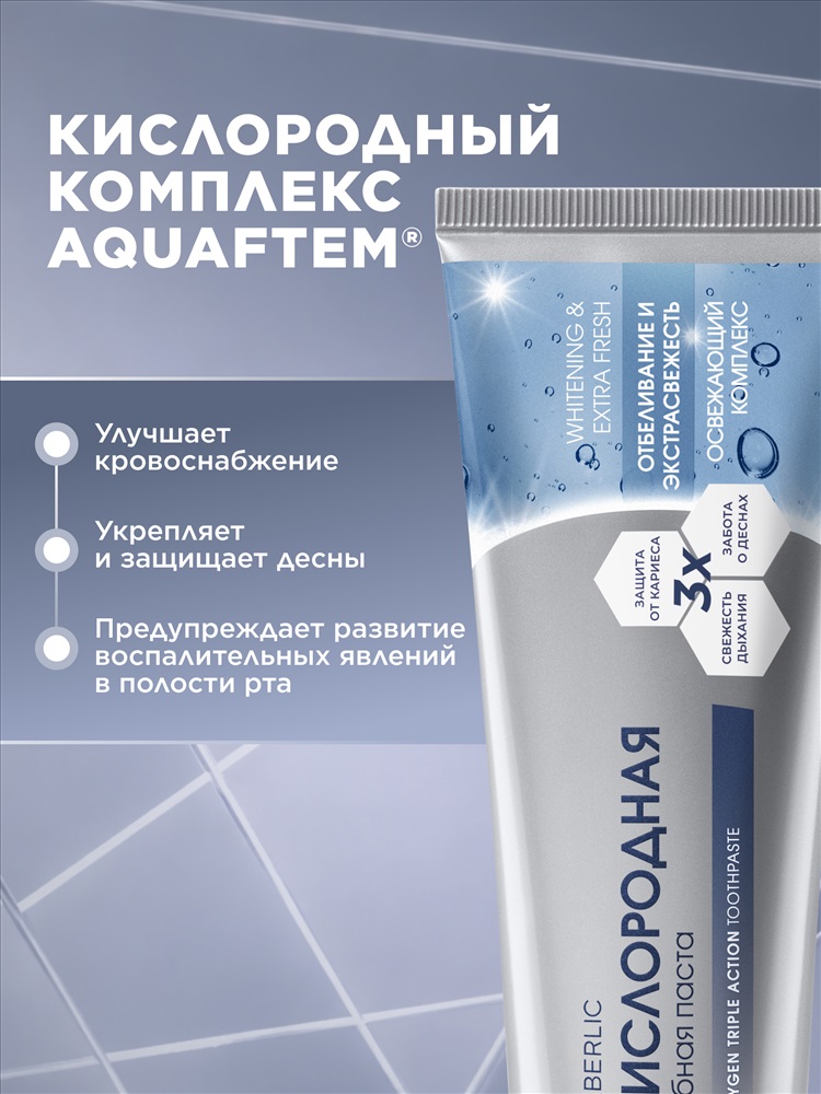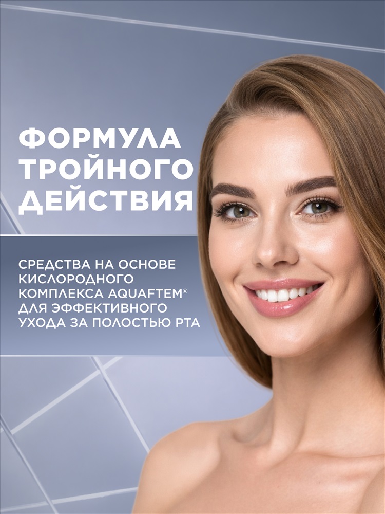 Кислородный комплекс Aquaftem® улучшает кровоснабжение десен, укрепляет и защищает их, предупреждает развитие воспалительных явлений в полости рта.