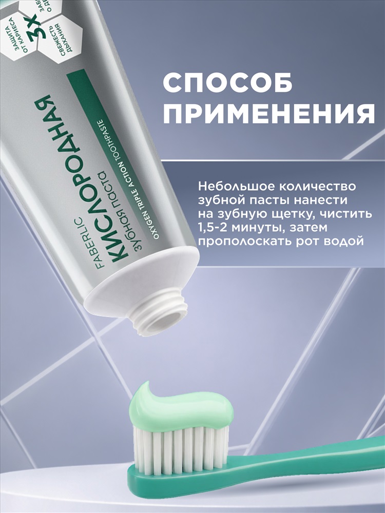 Небольшое количество зубной пасты нанести на зубную щетку, чистить 1,5-2 минуты, затем прополоскать рот водой.