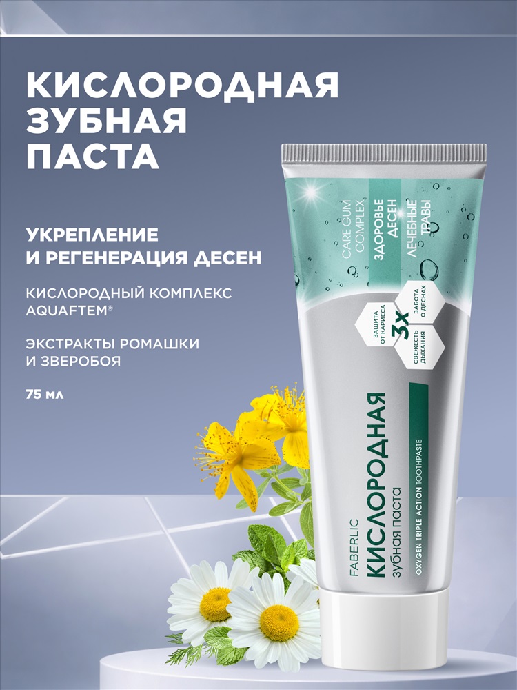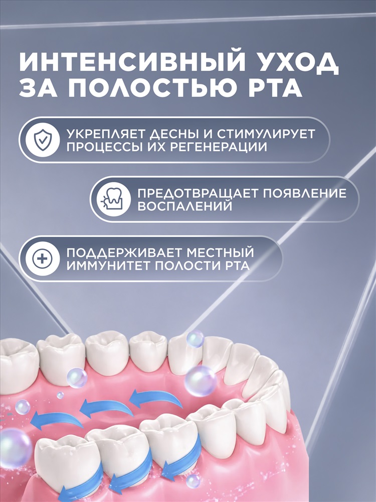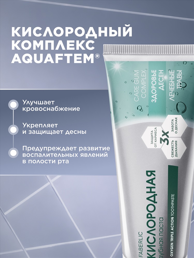 Кислородный комплекс Aquaftem® улучшает кровоснабжение десен, укрепляет и защищает их, предупреждает развитие воспалительных явлений в полости рта.