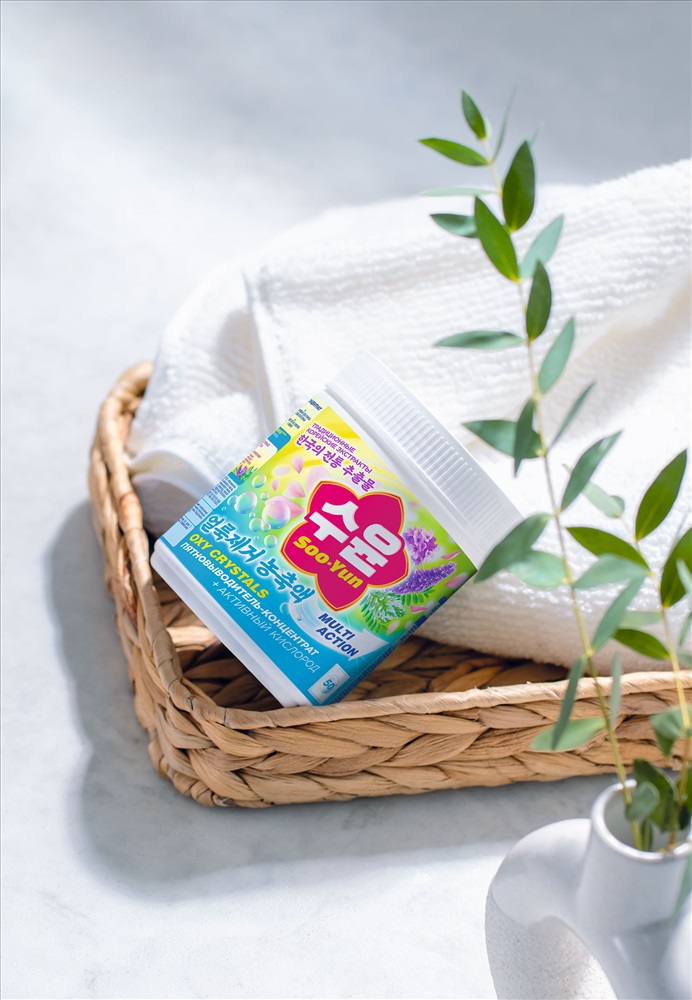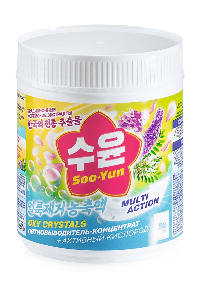 КОРЕЙСКОЕ ИСКУССТВО ЗАБОТЫ О ДОМЕ Более 30 способов применения — может всё! Кислородный пятновыводитель-концентрат Oxy Crystals с легкостью очищает и ткани, и твердые моющиеся поверхности. Рекомендован для одежды, обуви, ванны, кухни, мебели, ковров, посуды. Линия Soo-Yun – это косметика для дома, созданная по корейским традициям. Это удобные и мультиэффективные средства для простой, быстрой и приятной уборки. Комплексные формулы разработаны на основе особых комбинаций традиционных для Кореи очищающих компонентов.