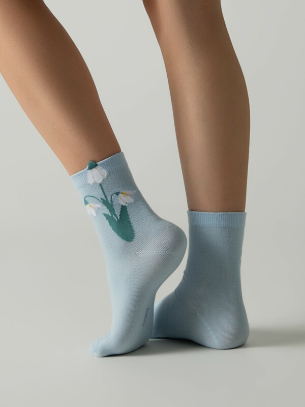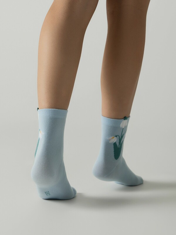 Удлинённые носки из мягкого хлопка с пикотом в виде цветка, который расположен на задней части модели. Коллекция создана специально к весеннему сезону.
