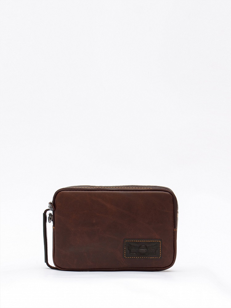 Носится в руке вертикально или горизонтально. Две встроенные ручки. На задней части имеется карман на молнии.