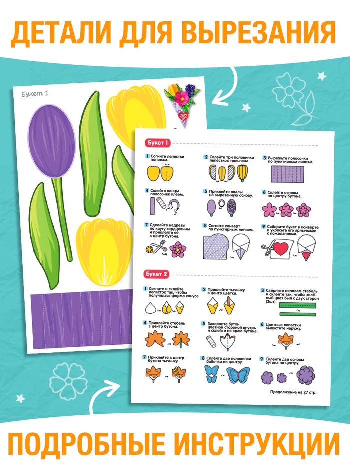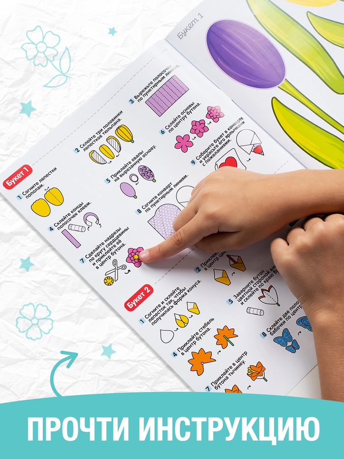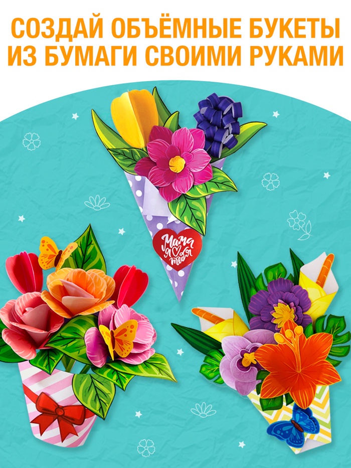 Творим с удовольствием Эта книга напоминает коробку с заготовками для маленьких волшебниц, где каждая страница — это ключ к созданию цветочной фантазии. Девочки словно становятся флористами, оживляя бумагу своими руками. Это похоже на игру с пазлами, только вместо картинок — цветы, а результат всегда вызывает радость и гордость. «Объёмные букеты» — это не просто книга, а источник вдохновения. Она помогает развивать терпение, аккуратность и художественный вкус. Отличный выбор для тех, кто любит создавать красоту своими руками! ДополнительноРазмер книги — 20×28 см. Комментарии к товару