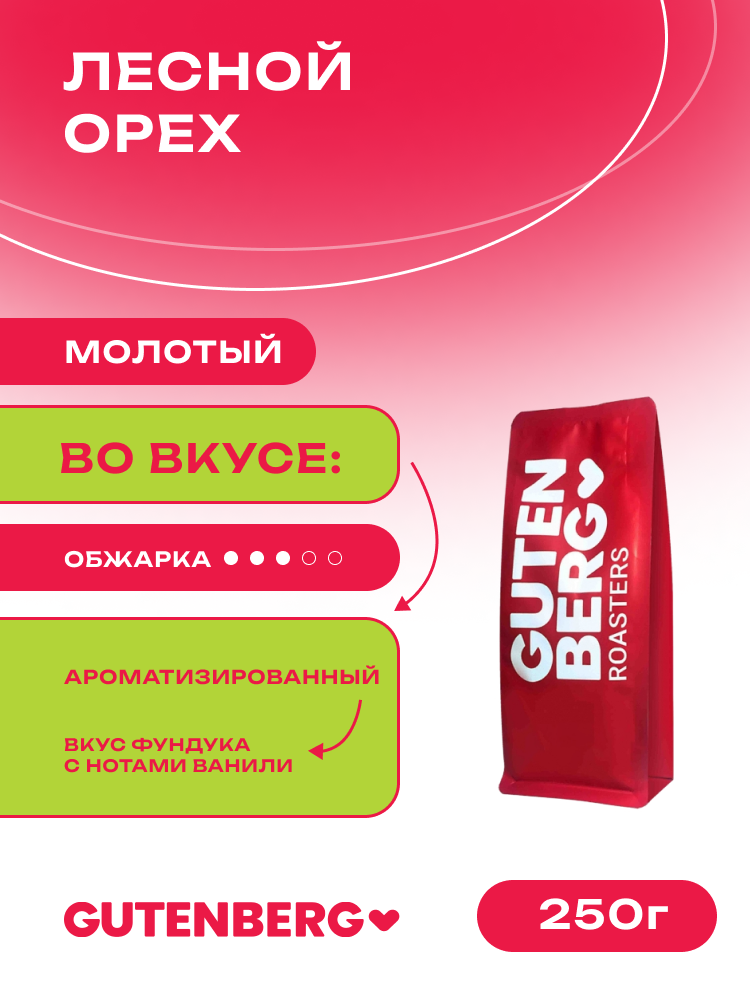 100% высококачественная арабика с ароматом лесного ореха. Насыщенный вкус, яркие ноты шоколада и лесного ореха деликатно переходят в долгое манящее послевкусие.