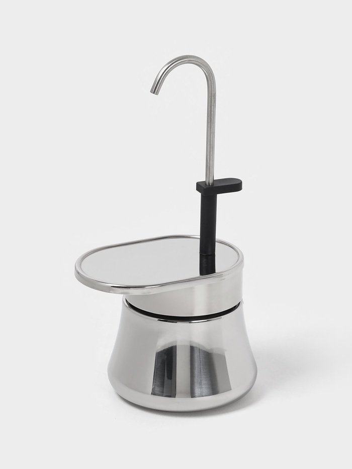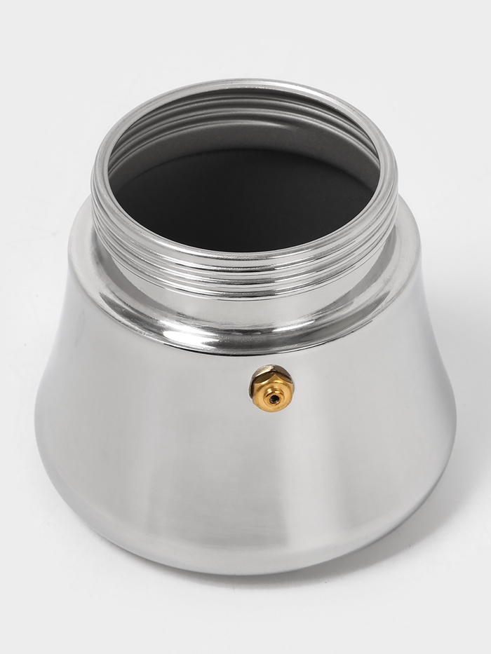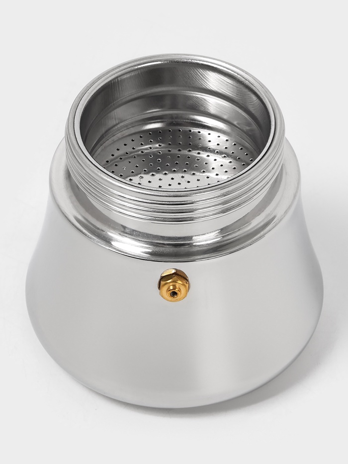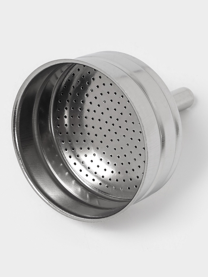- Вставьте воронку в нижний резервуар, уберите излишки кофе с бортиков, чтобы они не прилипли к уплотнителю, и крепко прикрутите верхнюю часть на место.