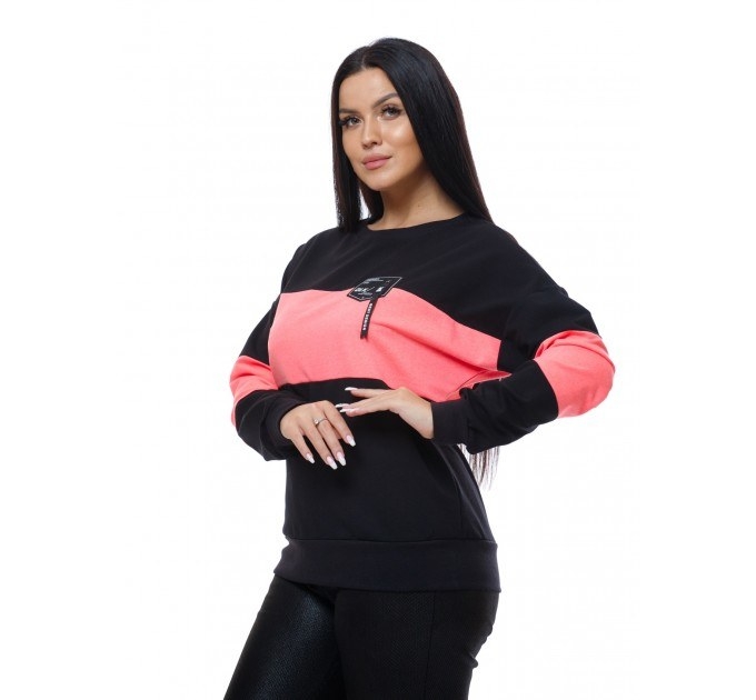 Модель кофты простого кроя из трикотажного полотна, в которой всегда можно выглядеть модно, а при необходимости и согреться. Удобный крой, не сковывающий движений. Рукава и низ изделия на манжете из рибаны. Дополнением к образу служит стильная нашивка спереди изделия.