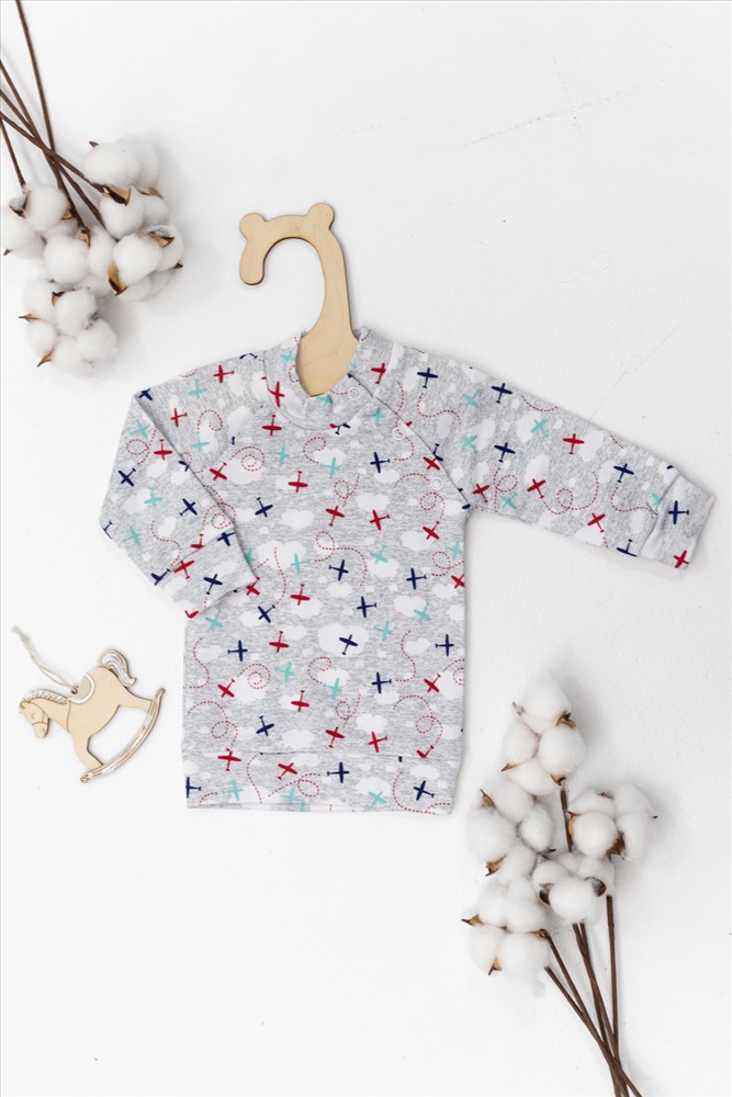 Сезон: Всесезонный Состав: Хлопок 100% Цвет Номенклатуры: белый/красный Детская кофточка из интерлока с набивным рисунком. С длинным рукавом и боковой застёжкой на кнопки. Комментарии к товару