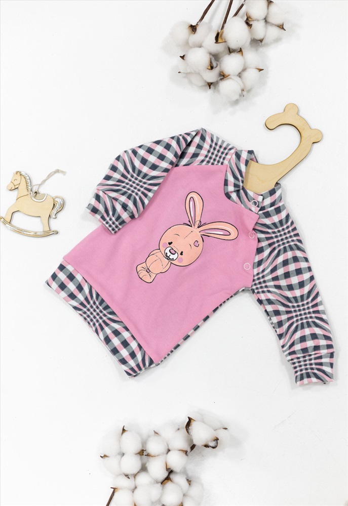 Цвет Номенклатуры: розовый/серый Детская кофточка из интрелока с принтом спереди. Длинные рукава покроя реглан, боковая застёжка на кнопки.