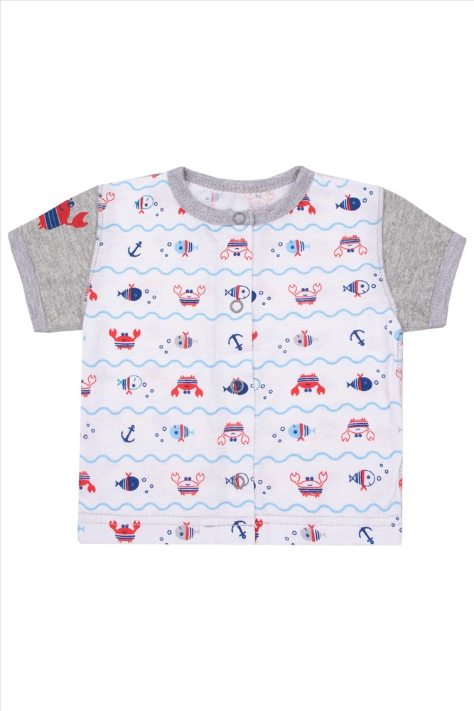 ID товара: 1210677 Акции: -5%, до 24.11.2025 Состав: 100% Хлопок Сезон: Демисезон Длина: Средняя Фасон: Прямой Рукав: короткие Вид застежки: Кнопки Вырез горловины: Овальный Рисунок: Морской Декоративные элементы: Принт Основная ткань: Кулирка Стиль: повседневный Страна бренда: Россия Страна производства: Россия Детская кофточка с принтом. Комментарии к товару