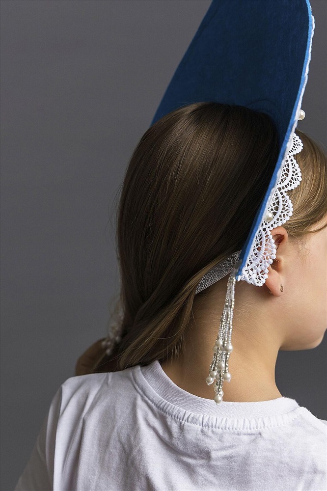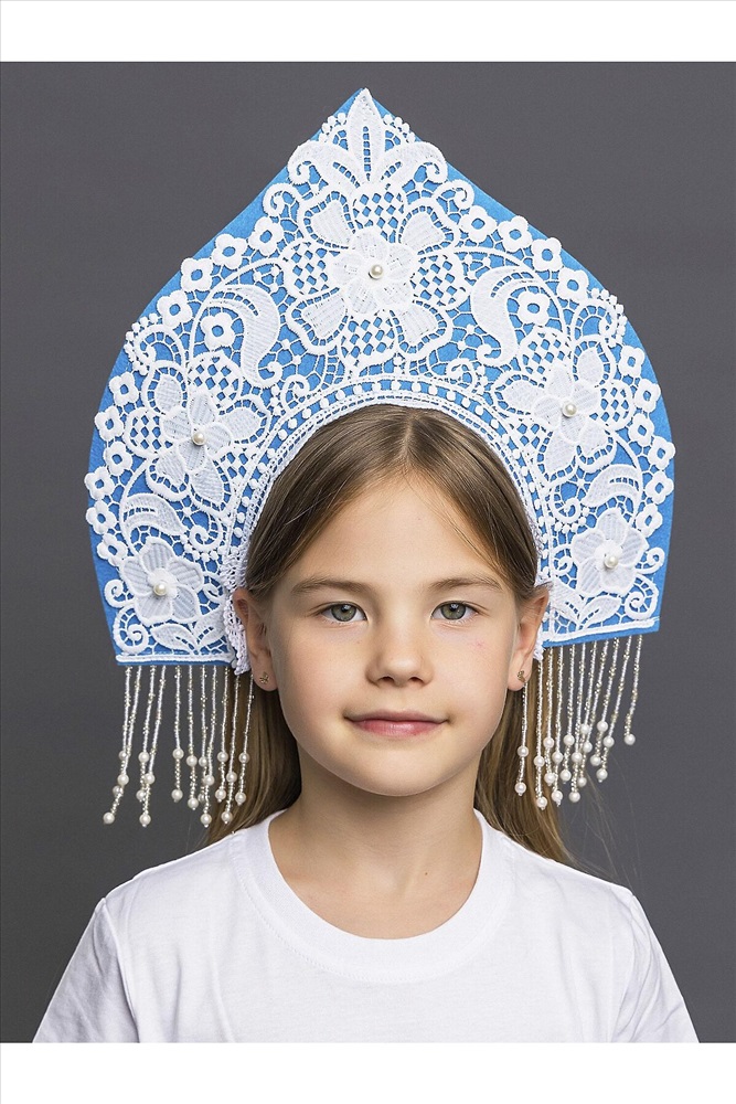 Кокошник «Снегурочка Кружевница» — изящный праздничный головной убор, выполненный в традиционном русском стиле. Украшен кружевным орнаментом и блестящим декором, создающим образ нежной и волшебной Снегурочки. Лёгкий и удобный в носке, идеально подойдёт для новогодних представлений, костюмированных праздников и фотосессий.