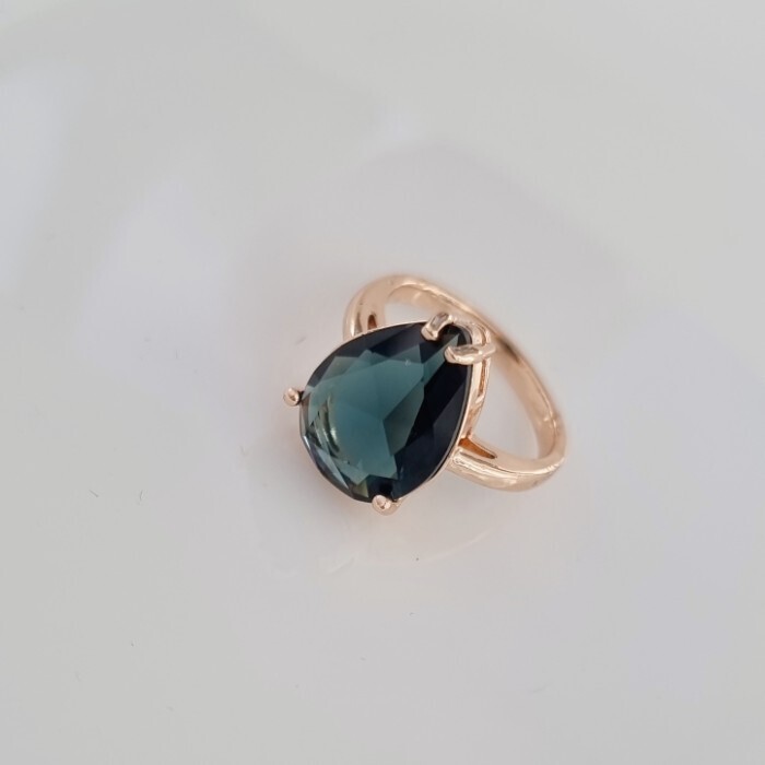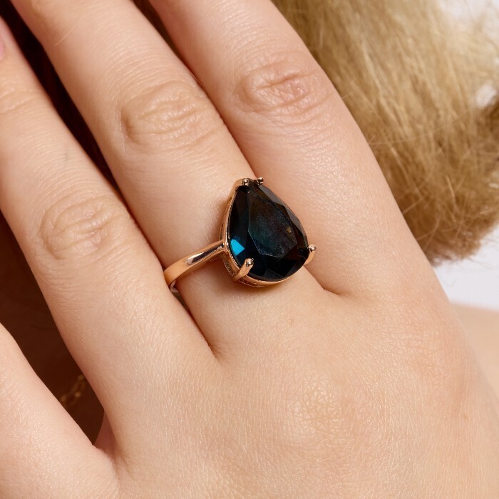 Кольцо 17 р бижутерия Дубайское золото: покрытие позолота, вставка: фианит, цвет: синий, арт.414.140-17