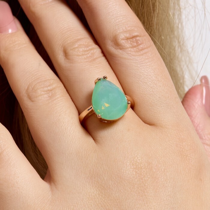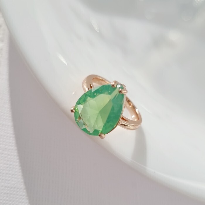 Кольцо 17 р бижутерия Дубайское золото: покрытие позолота, вставка: фианит, цвет: светлый зеленый, арт.414.142-17