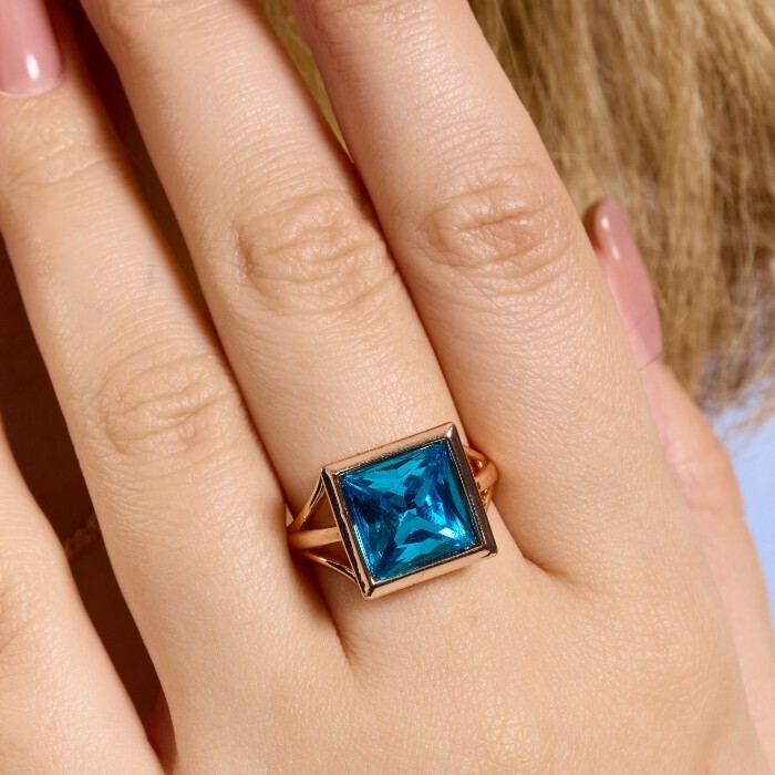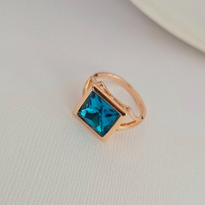 Кольцо 17 р ювелирная бижутерия коллекция "Дубай", покрытие позолота, вставка: фианит, цвет: голубой, арт.414.113-17