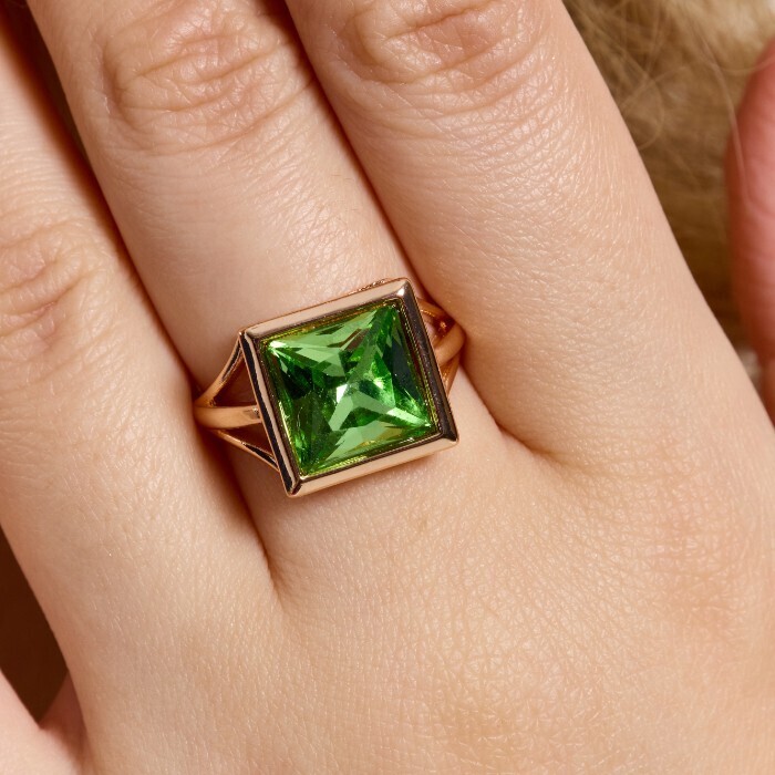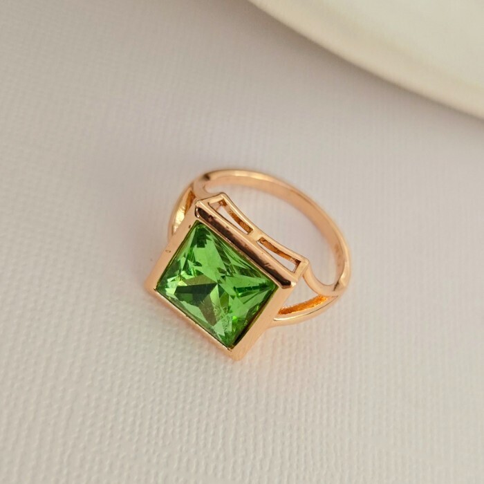 Кольцо 17 р ювелирная бижутерия коллекция "Дубай", покрытие позолота, вставка: фианит, цвет: зеленый, арт.414.114-17