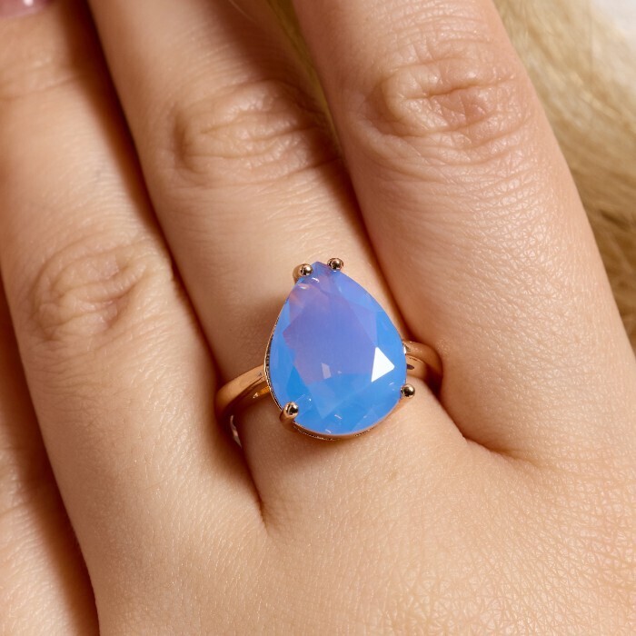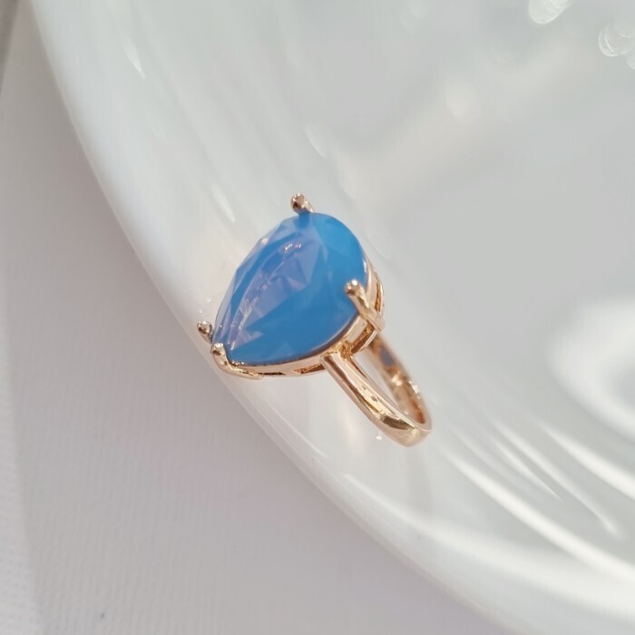 Кольцо 18 р бижутерия Дубайское золото: покрытие позолота, вставка: фианит, цвет: голубой, арт.414.143-18