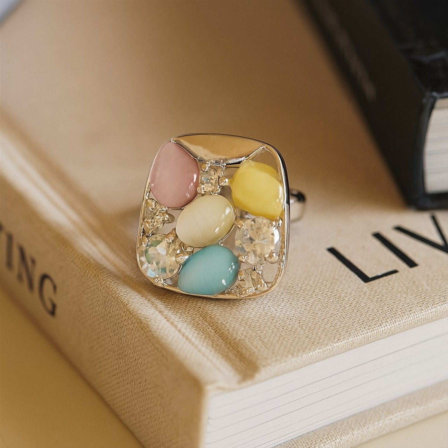 Кольцо 18 р ювелирная бижутерия коллекция "Дубай" покрытие посеребрение, вставка: искусственный камень кошачий глаз и фианиты, арт.007.141-18