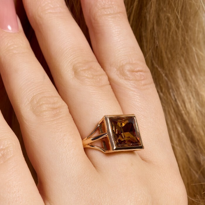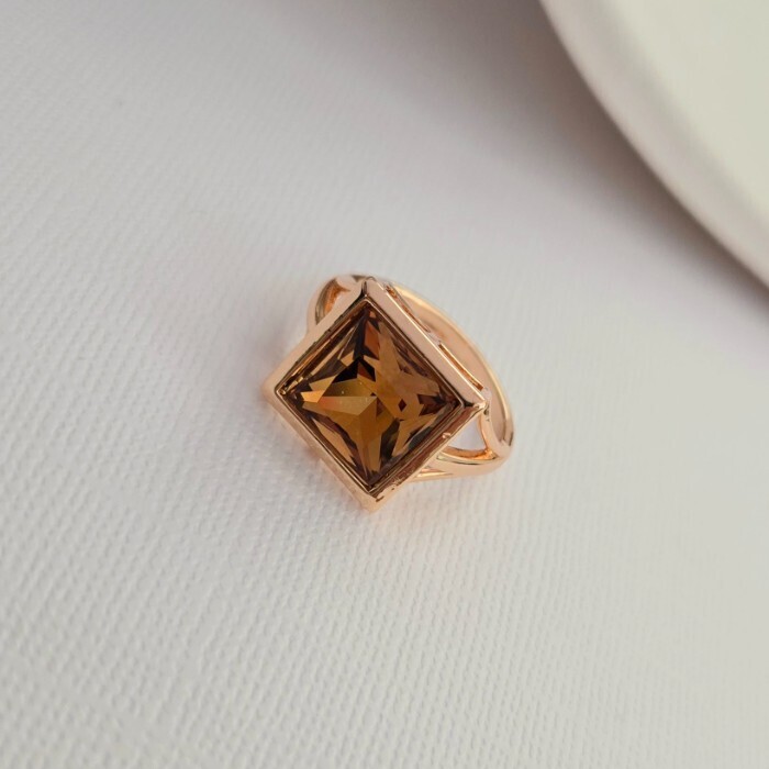 Кольцо 18 р ювелирная бижутерия коллекция "Дубай", покрытие позолота, вставка: фианит, цвет: коричневый, арт.414.110-18