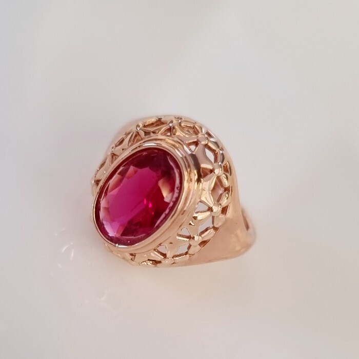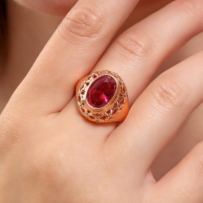 Кольцо 18 р ювелирная бижутерия коллекция "Дубай", покрытие позолота, вставка: фианит, цвет: малиновый, арт.314.847-18