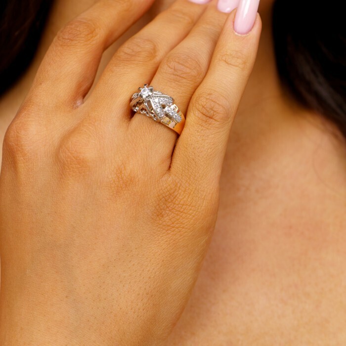 Кольцо 18 р ювелирная бижутерия коллекция "Дубай", покрытие позолота, вставка: фианиты, цвет: прозрачный, арт.314.851-18