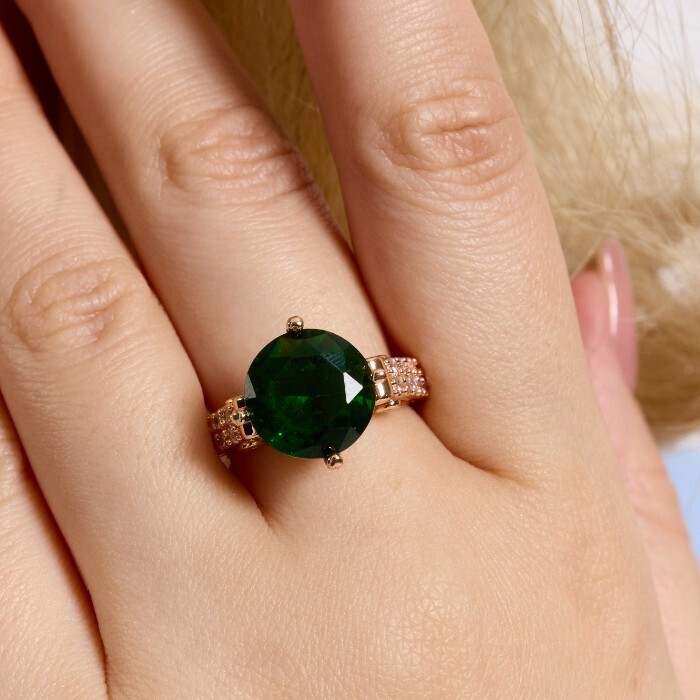 Кольцо 18 р ювелирная бижутерия коллекция "Дубай", покрытие позолота, вставка: фианиты и цирконы, цвет: изумрудный и прозрачный, арт.414.129-18