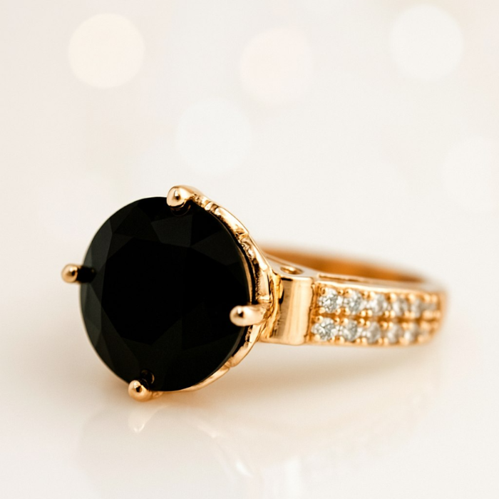 Кольцо 18 р ювелирная бижутерия коллекция "Дубай", покрытие позолота, вставка: фианиты и цирконы, цвет: черный и прозрачный, арт.414.128-18