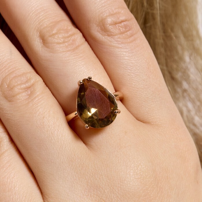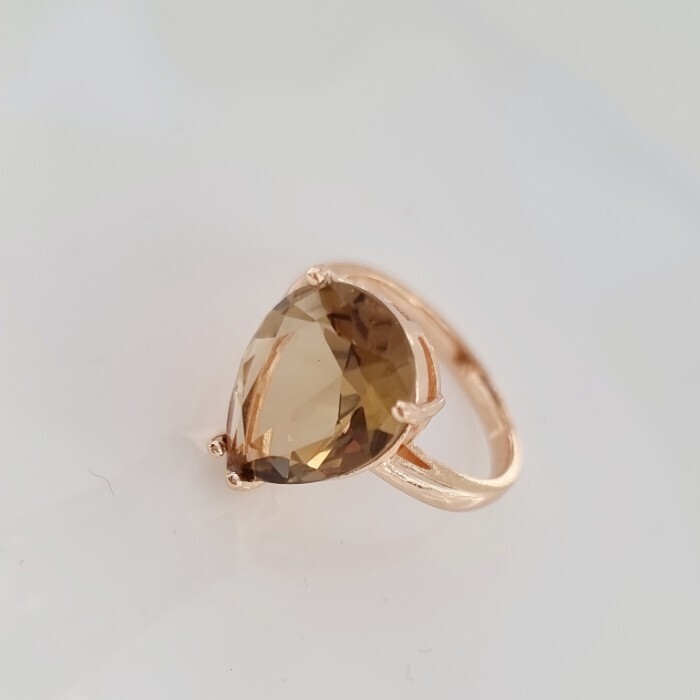 Кольцо 19 р бижутерия Дубайское золото: покрытие позолота, вставка: фианит, цвет: коричневый, арт.414.144-19