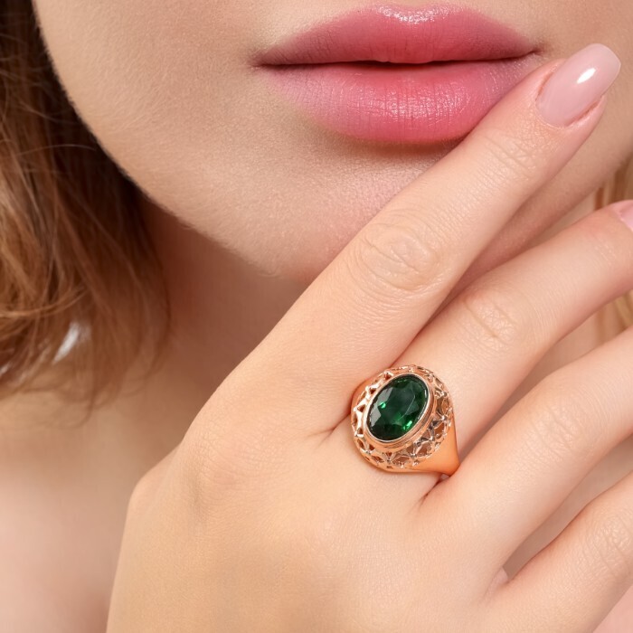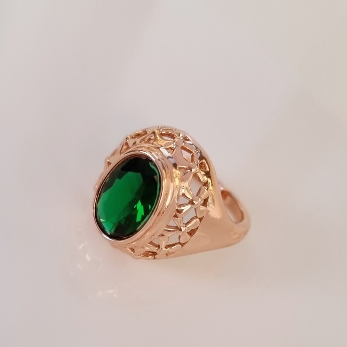 Кольцо 19 р ювелирная бижутерия коллекция "Дубай", покрытие позолота, вставка: фианит, цвет: зеленый, арт.314.848-19