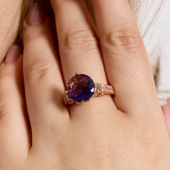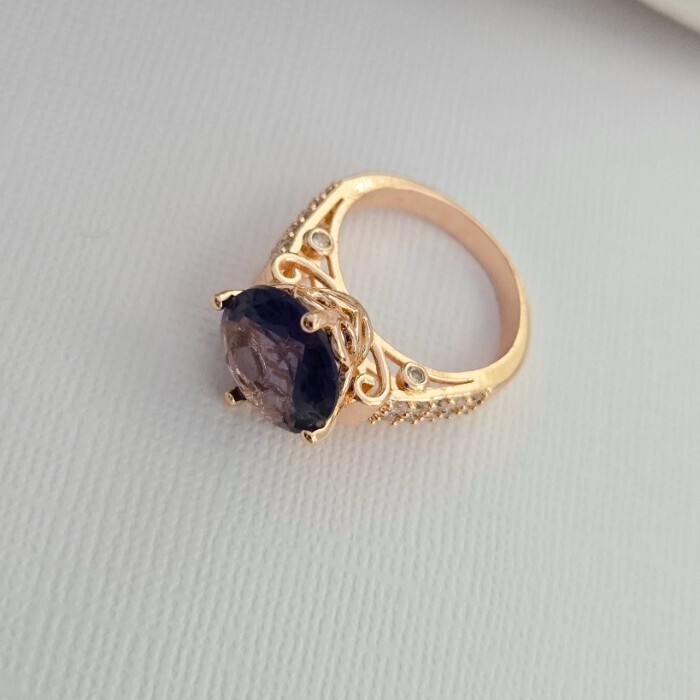 Кольцо 19 р ювелирная бижутерия коллекция "Дубай", покрытие позолота, вставка: фианиты и цирконы, цвет: аметистовый и прозрачный, арт.414.132-19