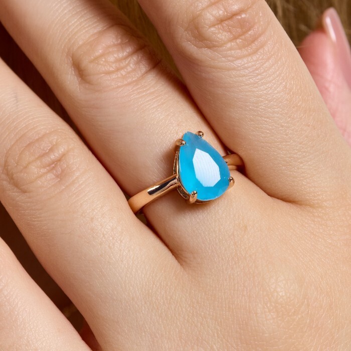 Кольцо 20 р ювелирная бижутерия коллекция "Дубай", покрытие позолота, вставка: фианиты, цвет: голубой матовый, арт.414.101-20