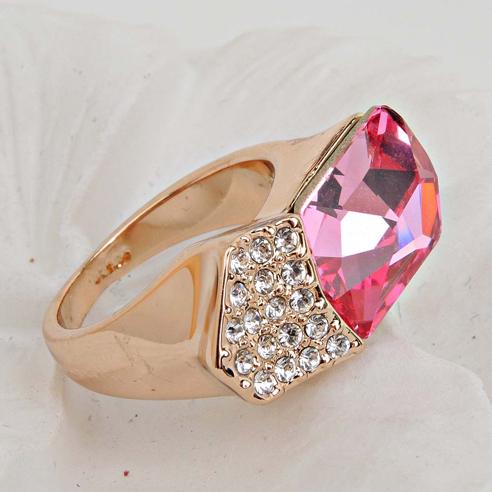 Тема: Остаток более 5 шт Цвет: Розовый Металл: Золотое покрытие 18k Материал: Ювелирный сплав Вставка: Сваровски swarovski Производство: Китай Количество: шт Кольцо розовое с золотым покрытием 18K 1 мкр с кристаллами SWAROVSKI