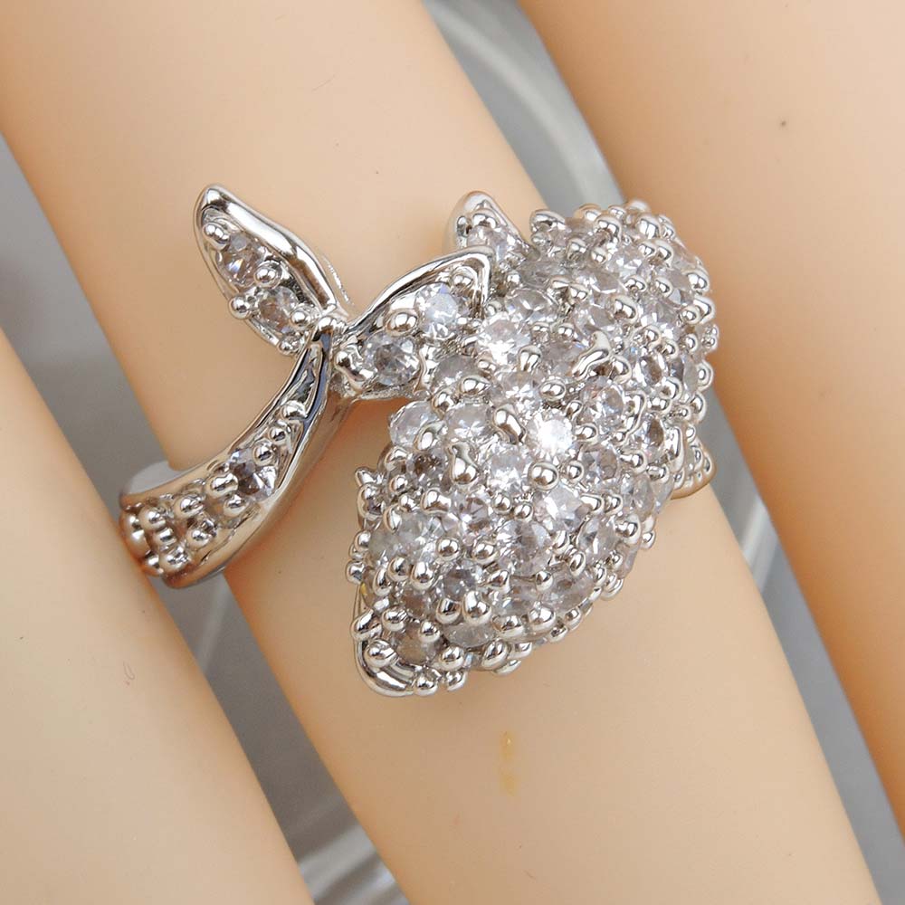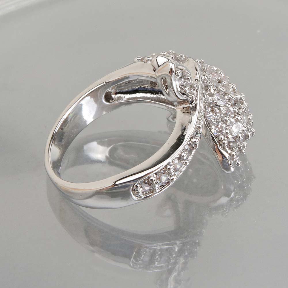 Кольцо белое с родиевым покрытием с цирконами (фианитами)