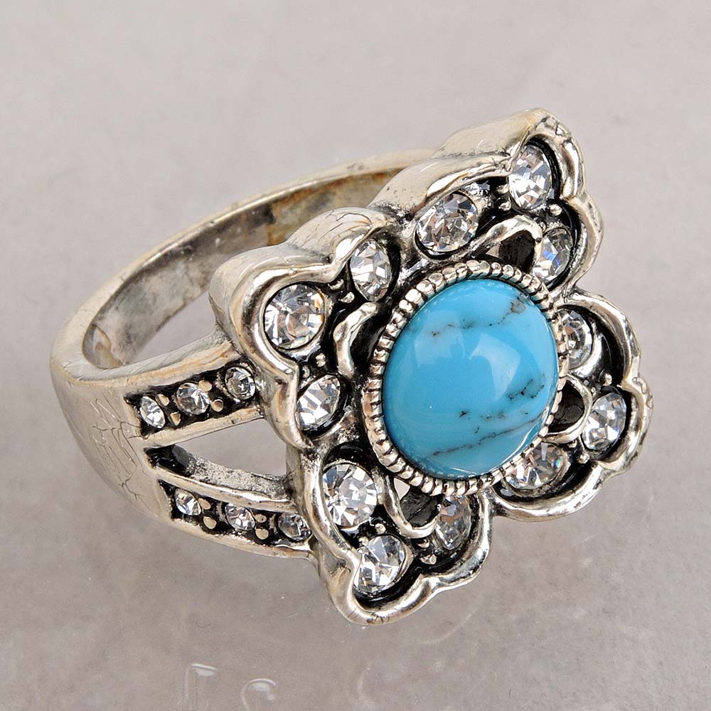 Кольцо серое с гальваническим покрытием под серебро со стразами