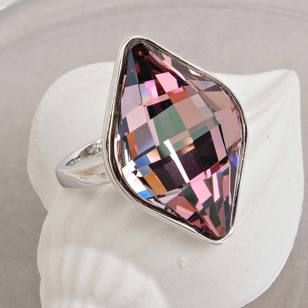 Кольцо фиолетовое с родиевым покрытием с кристаллами SWAROVSKI