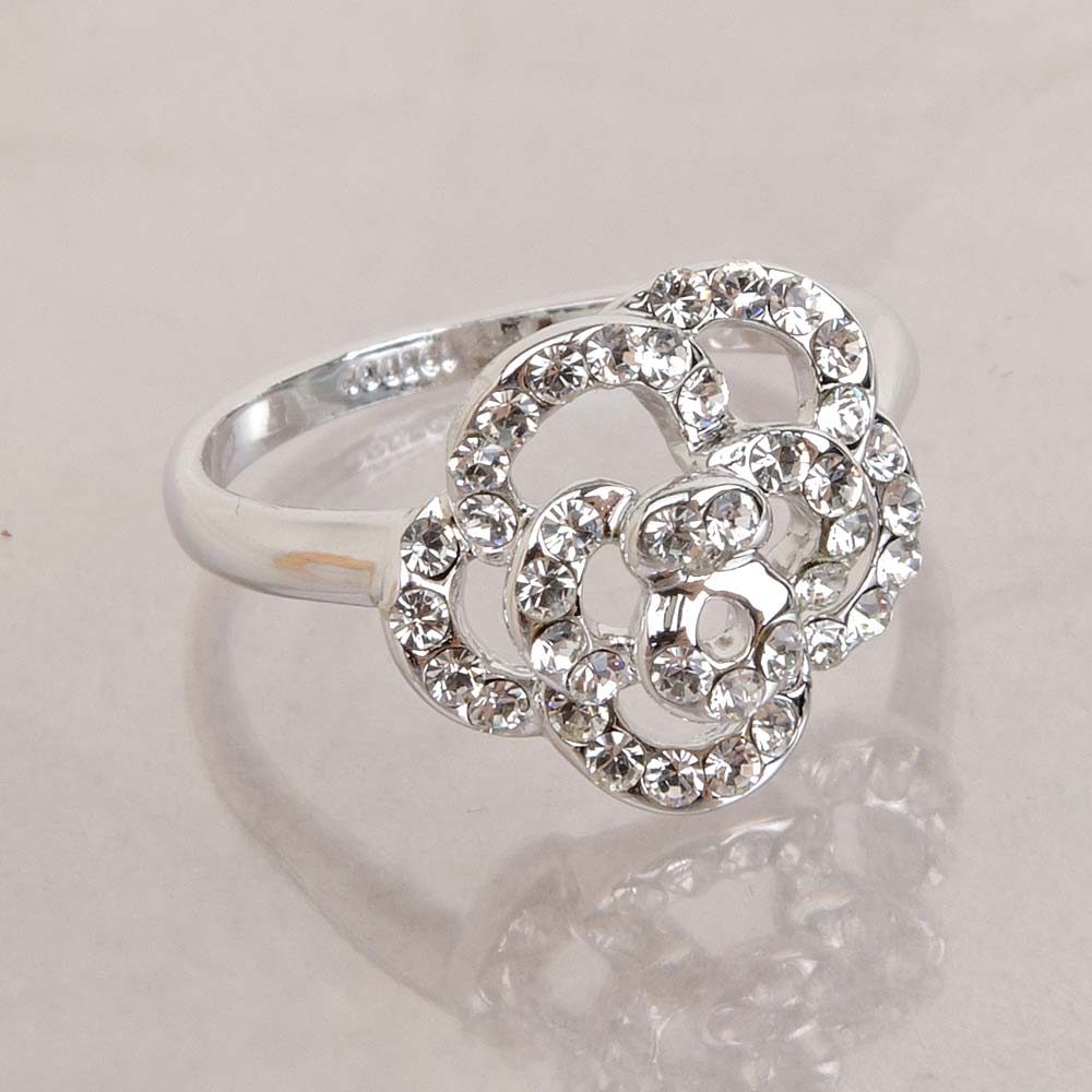 Цвет: Белый Металл: Родиевое покрытие Материал: Ювелирный сплав Вставка: Стразы Производство: Китай Количество: шт Кольцо белое с родиевым покрытием со стразами