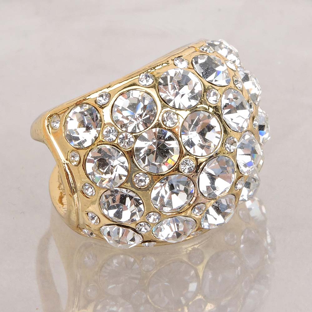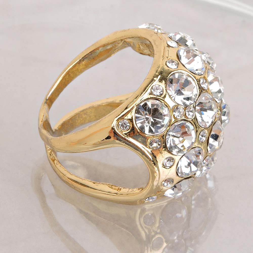 Кольцо белое с золотым покрытием 18K 1 мкр со стразами