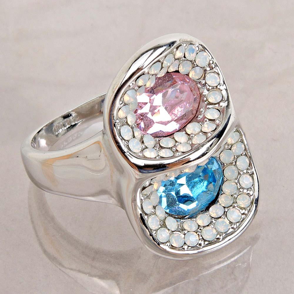 Кольцо многоцветное с родиевым покрытием с кристаллами SWAROVSKI