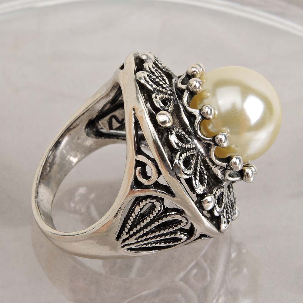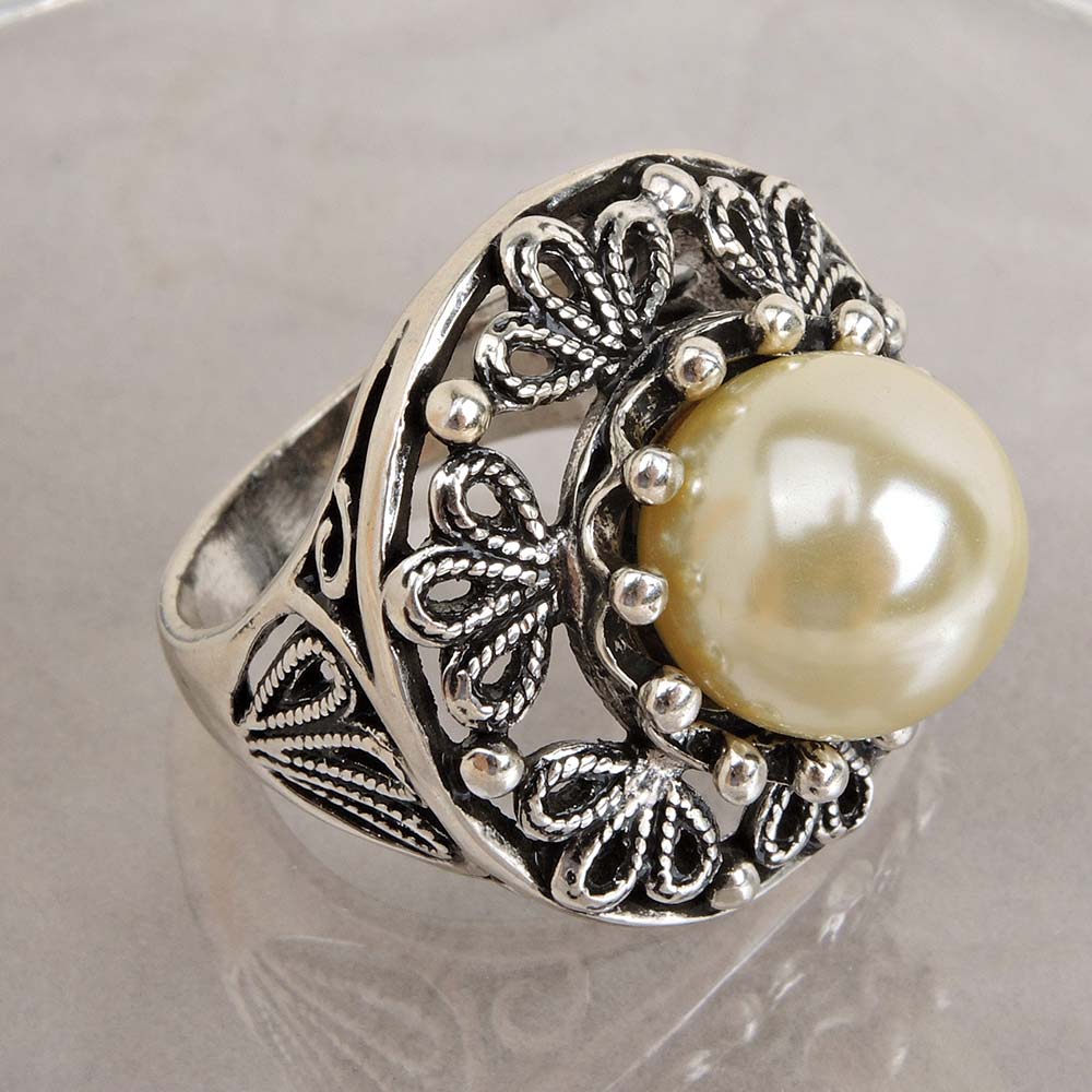 Металл: Серебрянный Материал: Бижутерный гипоаллергенный сплав Вставка: Жемчуг искусственный Производство: Китай Количество: шт Кольцо с гальваническим покрытием под серебро с акриловым жемчугом