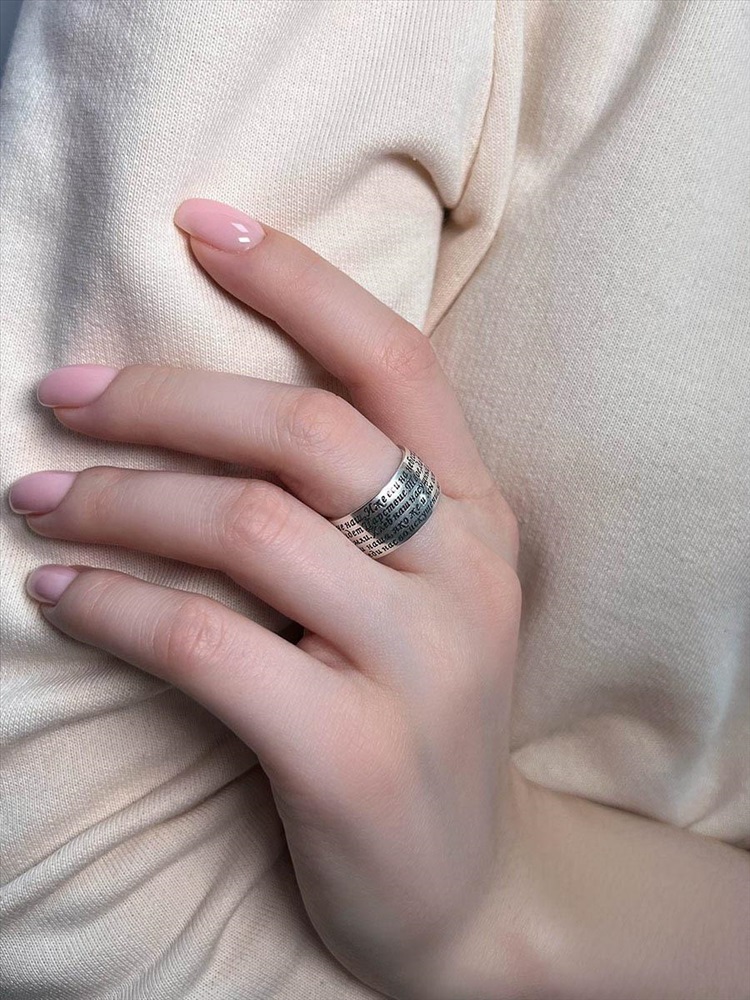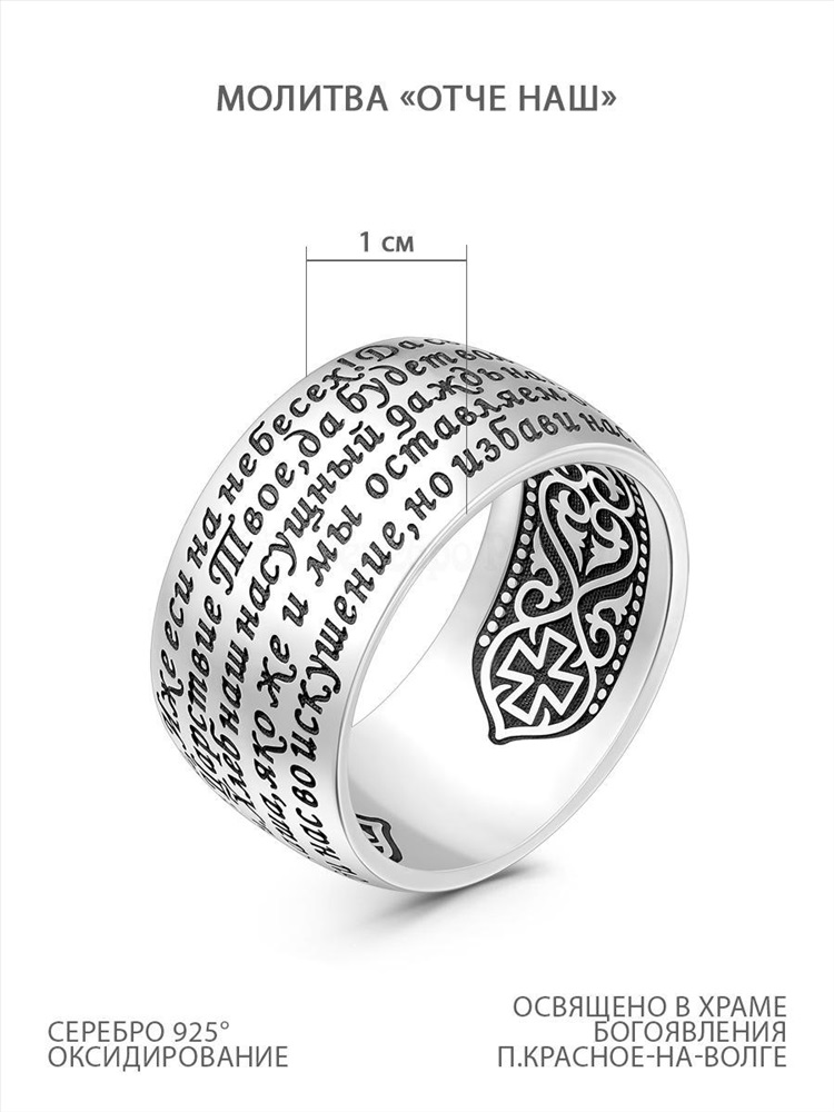 Кольцо из чернёного серебра - Отче наш 925 пробы К-167