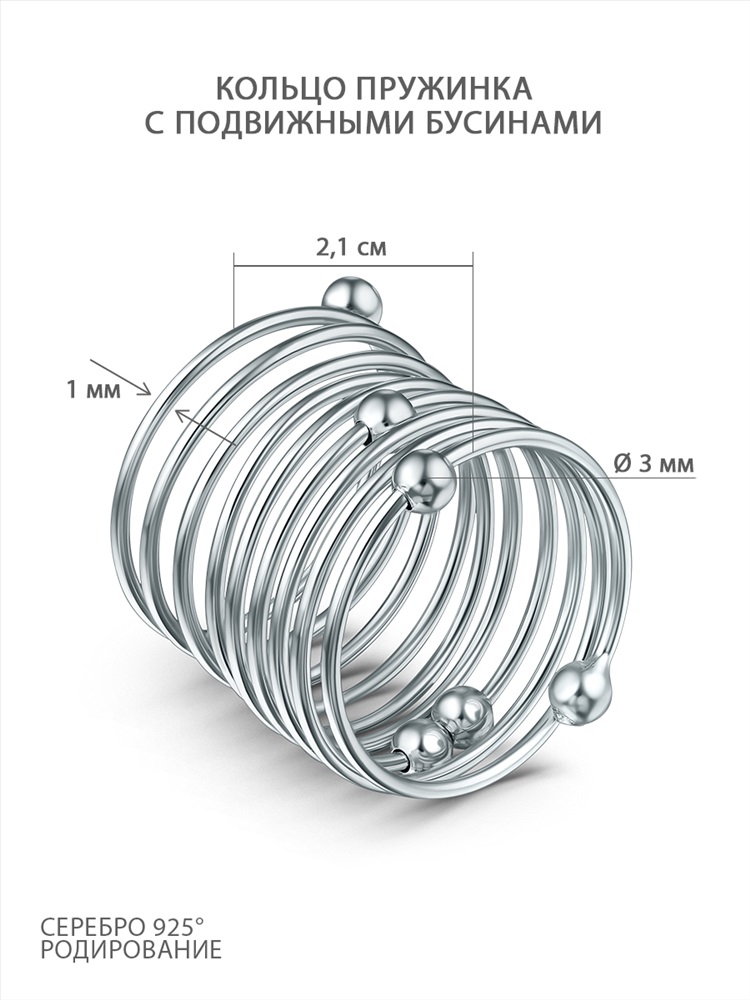 Кольцо из серебра с подвижными бусинами родированное - Пружинка 925 пробы N0235RH