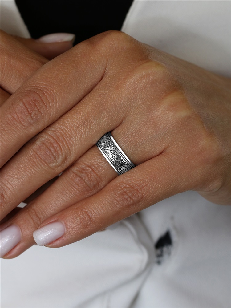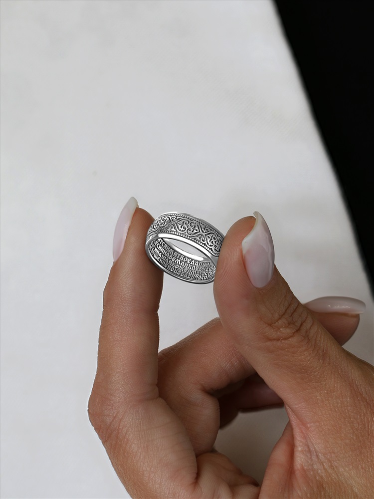 Кольцо из серебра с чернением - молитва Отче наш (внутри) 925 пробы К-031