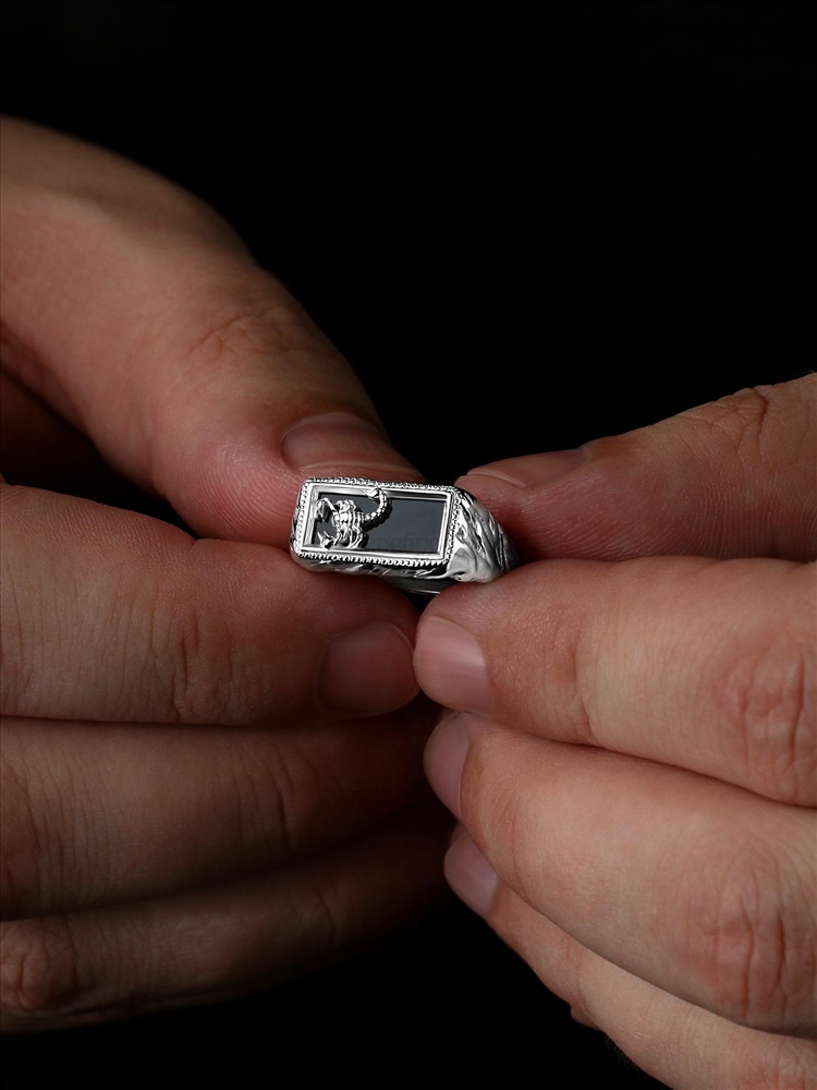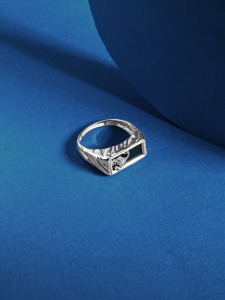 Кольцо из серебра с плавленым кварцем родированное - Скорпион К-3007р