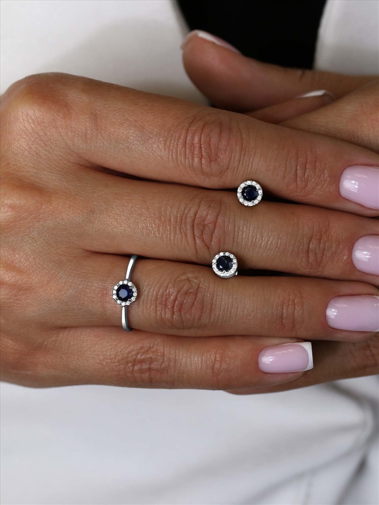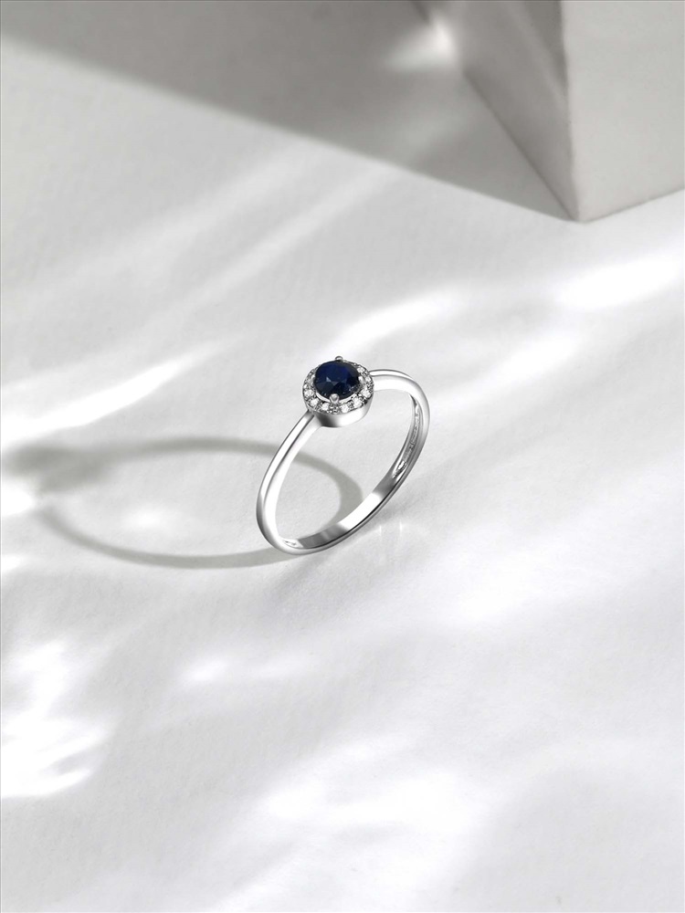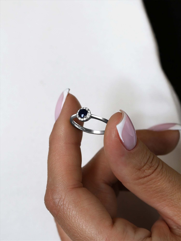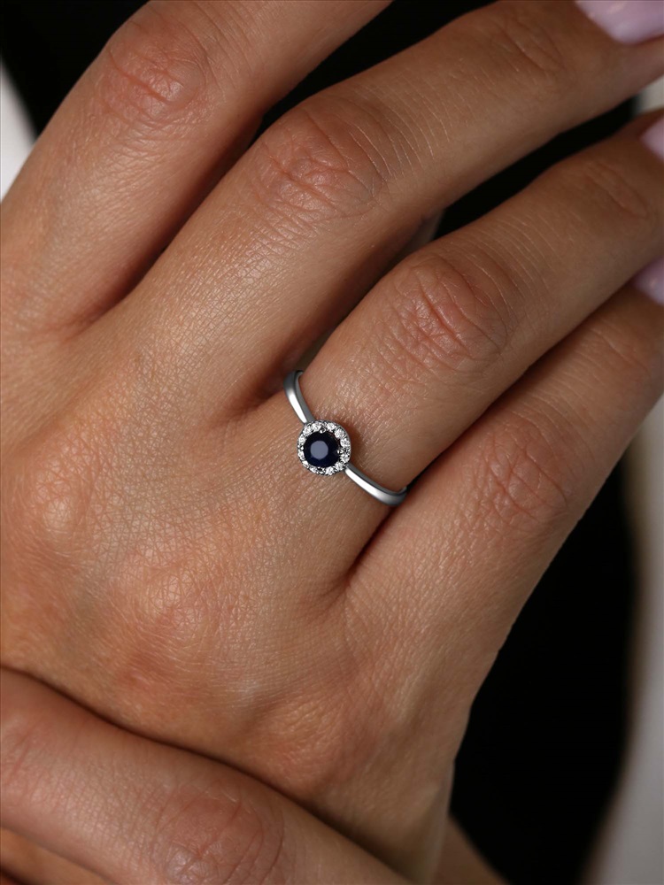 Кольцо из серебра с сапфиром и фианитами родированное К-038р