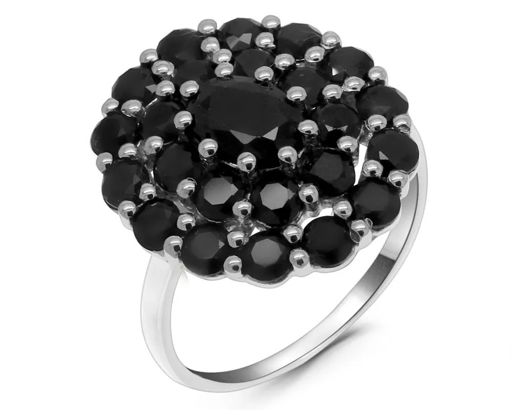 Вставка: Сапфир Дизайн: Многокаменка Цвет камня: Черный Производство: Индия Ячейка: 1.D.07.01 Размер колец: 20.521 Количество: 5 Кольцо, арт.18617 Серебро Серебро 925, р. 18, 3,42 гр., сапфир корунд Комментарии к товару