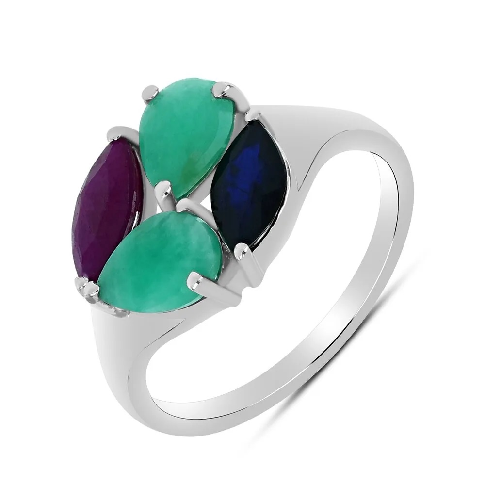 Кольцо, арт.657729 Серебро Серебро 925, р. 19.5, 2,91 гр., изумруд берилл , рубин корунд , сапфир корунд