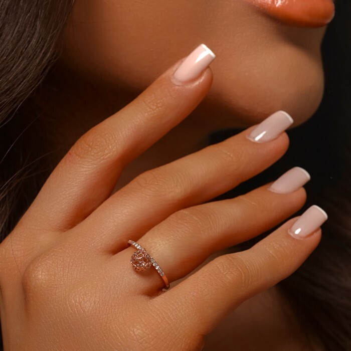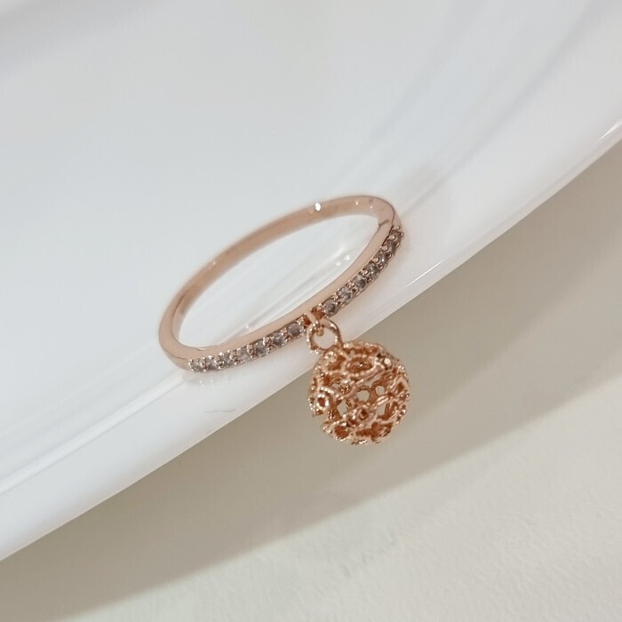 Кольцо с подвижной подвеской ювелирная бижутерия коллекция "Дубай", покрытие позолота, вставка: фианиты, цвет: прозрачный, 16 р, арт.219.408-16