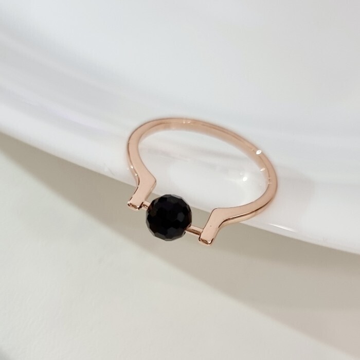 Кольцо с подвижным камнем ювелирная бижутерия коллекция "Дубай", покрытие позолота, вставка: фианиты, цвет: черный, 17 р, арт.219.416-17
